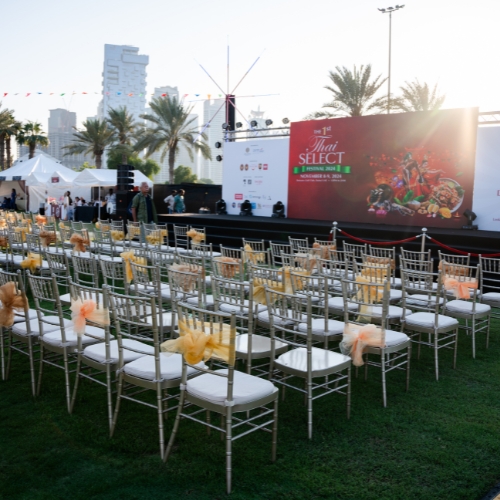While our full catalog is extensive, our most popular items often include elegant seating like Chiavari or Dior Chairs for weddings, Lounge Furniture (sofas, ottomans) for cocktail parties, Cocktail Tables and Bar Stools for corporate events, and our Arabic Majlis/Low Seating Setups for traditional or outdoor desert themes. We also see high demand for our LED Furniture collection.
