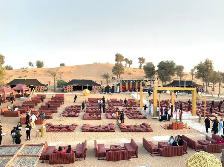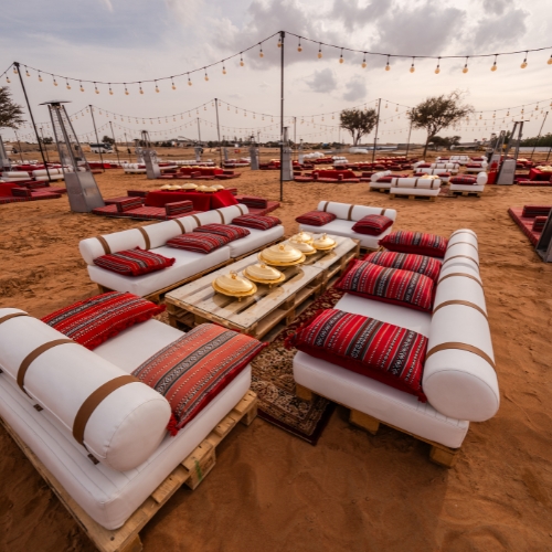 Transform any remote landscape into a luxury venue. Rent stunning desert event setups with bespoke Bedouin tents, elegant furniture, ambient lighting, and high-end catering support. Ideal for destination weddings and corporate retreats. We manage the extreme environment, you enjoy the view.